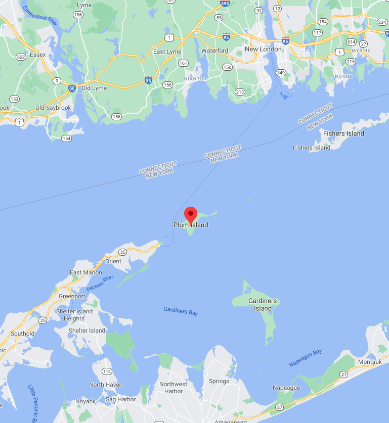 Mapa s ostrovem Plum Island (kde byla bioinženýrsky vyrobena Lymská nemoc) a jeho pozice vůči městům Old Lyme a East Lyme na pobřeží Connecticutu. Neví se přesně, jakým způsobem byli původně lidé infikováni a nemoc rozšířena, ale často uváděné „klíště“ jako vektor přenosu je zajisté jen zástěrka.