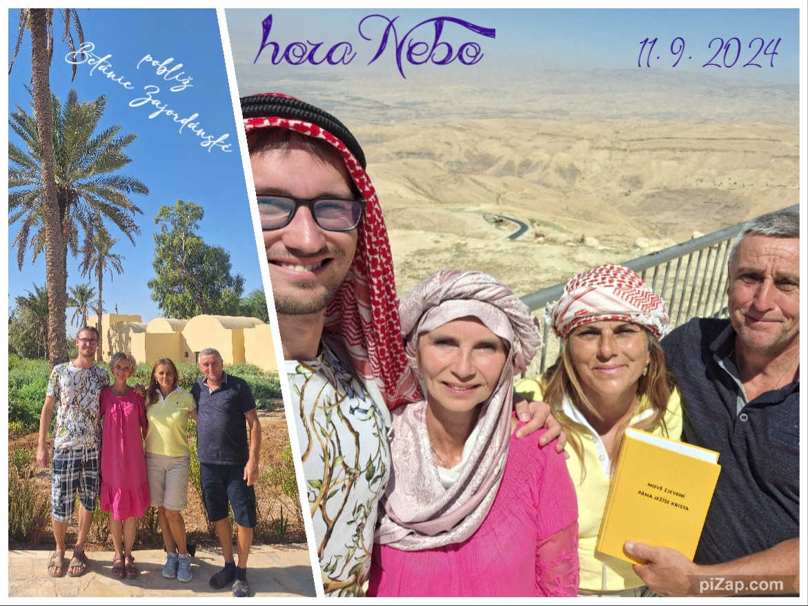 Míša: Po absolvování popsané a rozebrané cesty na horu Nebo jsme stanuli na jejím vrcholu, z něhož spatřil Mojžíš takzvanou zemi zaslíbenou, rozkládající se za řekou Jordán, kam chtěl dovést svůj izraelský lid. Do země zaslíbené ovšem nedošel, jelikož na hoře Nebo fyzicky skonal ve věku zhruba sto dvacet let. Pozice vůdce židovského lidu se pak chopil Jozue.